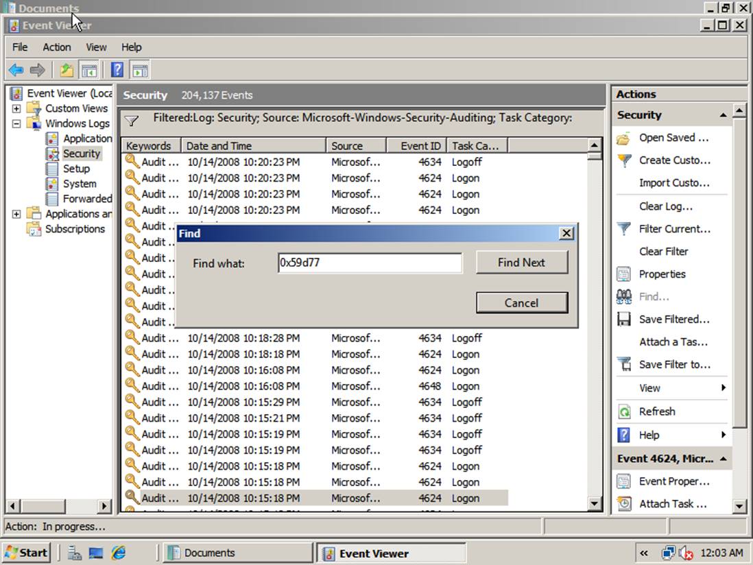 Event Viewer occasionally will report that the Security