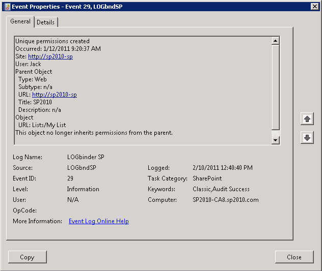 LOGbinder for SharePoint turns a raw SharePoint audit event like this: